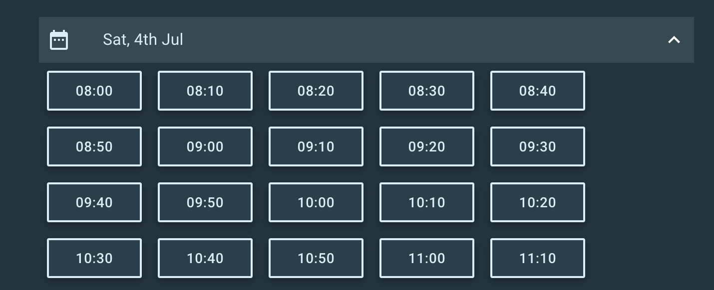 When you add your barber shop to Barber Shop Booking it will have a few default values applied to it. One of these is the 'slot spacing' - this setting controls how much choice your customers have when picking a time to book their cut.